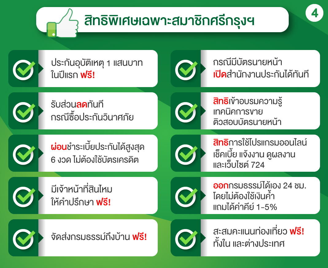 • รับฟรี ประกันอุบัติเหตุส่วนบุคคลทุน 1 แสน บาท ความคุ้มครอง 1 ปี หลังจากสมัครสมาชิก